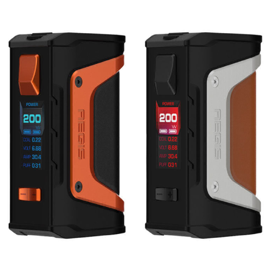 Along the aluminum and zinc alloy material construction, Geek Vape adopts an advanced LSR Injection Molding technology that can easily withstand dirty environmental, shock-absorbent, and water-resistant capability. A rocker-inspired firing button in a trigger-style structure provides user-friendly operation, with an intuitive OLED display screen for organized informational readouts. The Aegis Mod has a maximum wattage output of 100W, and several output modes, such as: Power Wattage, VPC, TC-TCR, and BYPASS Mode. Under temperature control setting, it has Temperature Coefficient of Resistance (TCR) setting, a proprietary technology to adjust resistance of a wide range of heating elements to different ranges. The USB port is safely covered on the top of the device, secured by two torx screw and meant to only be used for firmware updates. A sensational device crafted with modern chassis designs and comprehensive output functionalities, the Geek Vape Aegis 100W TC Box Mod reigns as one of the best single 18650/26650 output device overall!